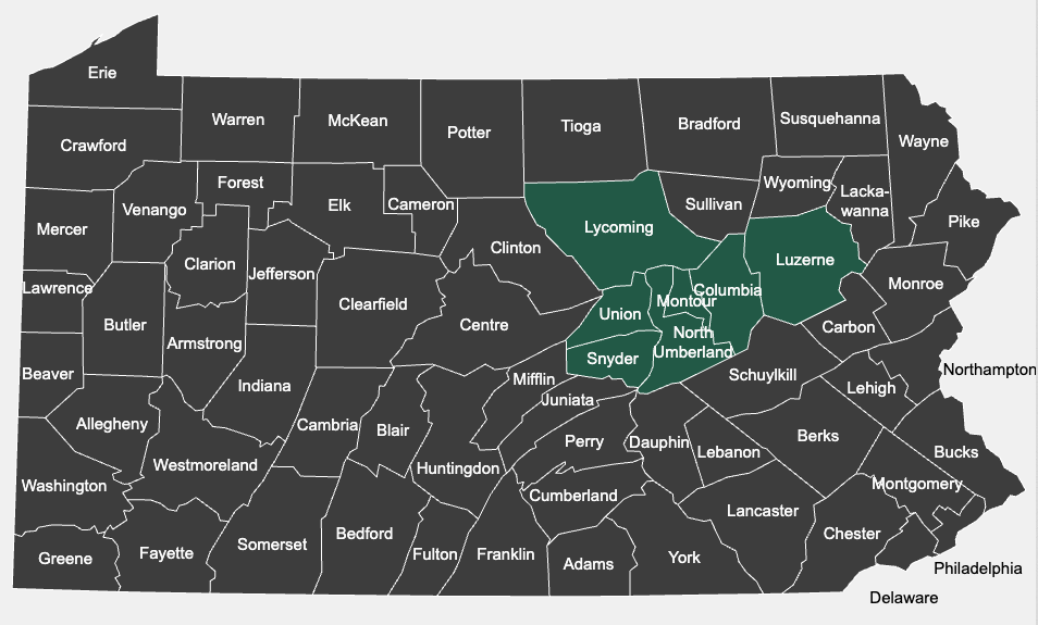 Serving Columbia, Montour, Northumberland, Snyder, and Union Counties, plus parts of Lycoming and Luzerne.
